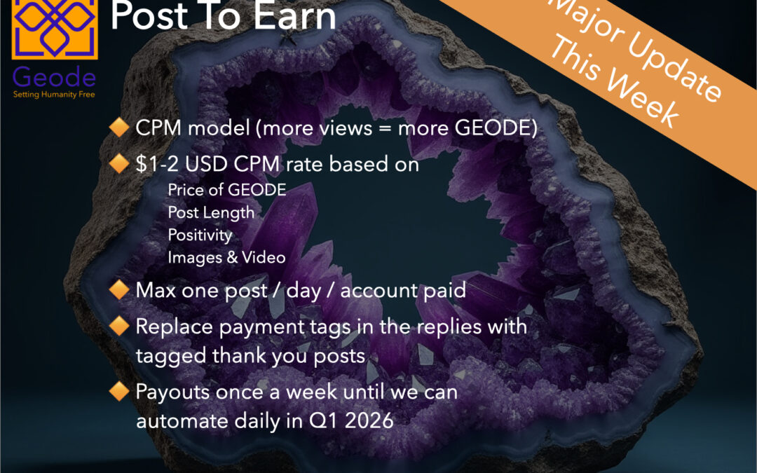 Geode’s Post-To-Earn Program got a high tech makeover this week with more automation, and CPM based payouts. Factors driving this upgrade are: